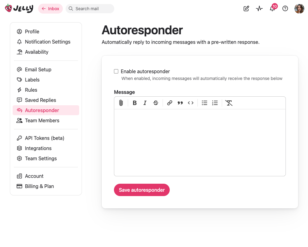 - Write your response message & click Save autoresponder